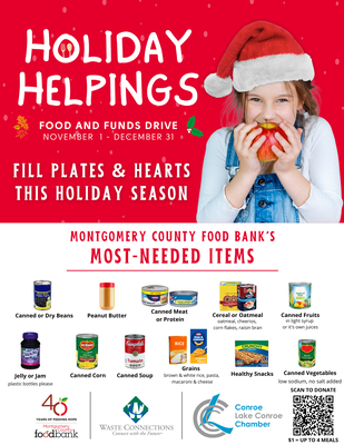 Bring specified food items to any November networking event, drop them off at the Chamber office, or click the link below to donate easily.