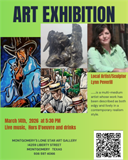 Please join us at Montgomery's Lone Star Art Gallery as we kick off 2026 Art Exhibits with local artists Lynn Peverill and David Moran.